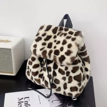 Harajuku Leopard Faux Fur Backpack for Women