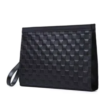Men’s Plaid Genuine Leather Clutch Bag