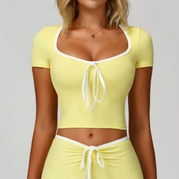 Sporty Women’s Push Up Short Sleeve Workout Top – Breathable Quick Dry