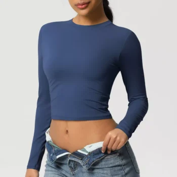 Women’s Long Sleeve Sports Crop Top – Yoga & Fitness Workout Shirt