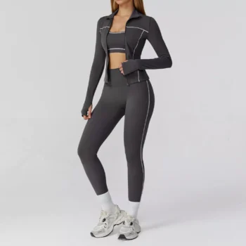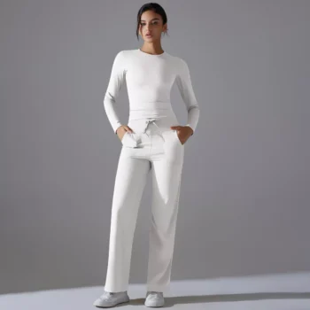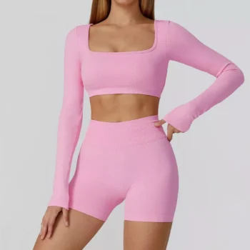 Women’s Long Sleeve Yoga Set with High-Waist Leggings – Fitness Sportswear Tracksuit