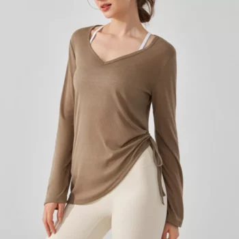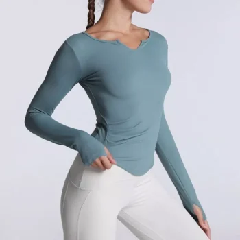 Women’s Long Sleeve V-Neck Yoga Top – Loose Fit Workout Shirt