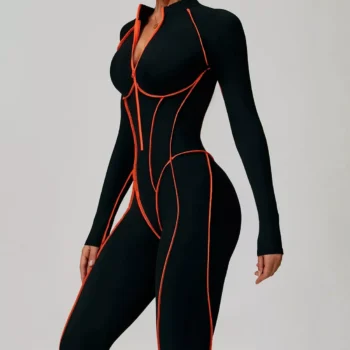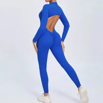 Sexy Long Sleeve Workout Romper – Zipper Front Gym Jumpsuit for Women
