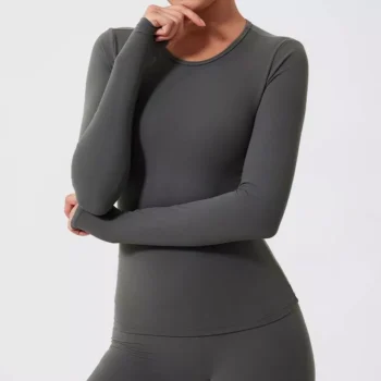 Women’s Long Sleeve Yoga & Fitness Top – Breathable O-Neck Workout Shirt