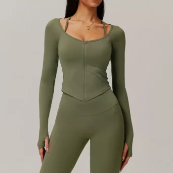 Women’s Long Sleeve Yoga Set with Breathable Top and Push Up Leggings
