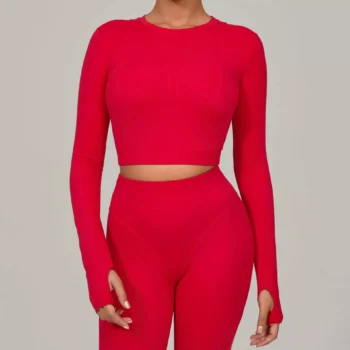 Women’s Quick-Dry Long Sleeve Yoga Crop Top – Breathable & Lightweight