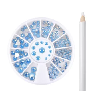Holographic Blue Opal Nail Rhinestones with Gem Pickup Pen – 3D Flatback Beads for DIY Nail Art