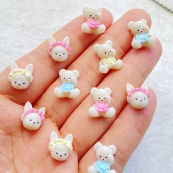 50Pcs Mini 3D Cartoon Rabbit & Bear Nail Art Charms
