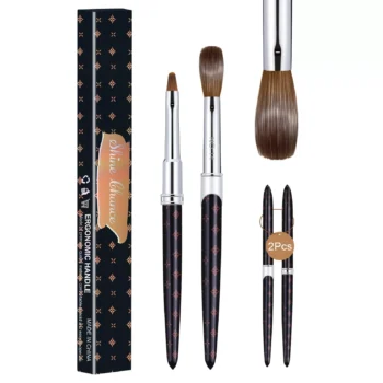 2PC 100% Sable Acrylic Nail Brush Set – UV Gel Carving & Nail Art Brushes