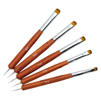 5pcs Dual End Nail Art Brushes with Redwood Handle for Gel, Acrylic & Rhinestone Design