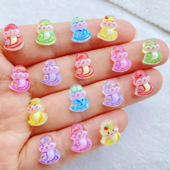 50Pcs Colorful Resin Snake Nail Charms – 3D Cartoon Rhinestone Decorations