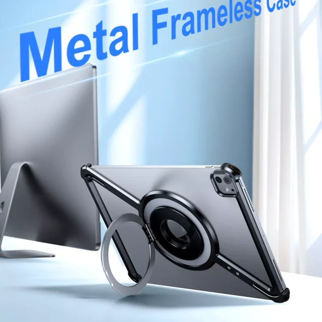 Give your tablet the armor it deserves with this frameless, drop-resistant case made exclusively for the 11-inch iPad Pro (2024). Crafted from premium aluminum alloy, this case is designed to match the elegance of your device while shielding it from life’s unexpected bumps. Featuring a 360° rotatable magnetic kickstand, it seamlessly combines style, strength, and smart functionality. Whether you’re streaming, sketching, working, or reading, this case adapts to every angle of your lifestyle.