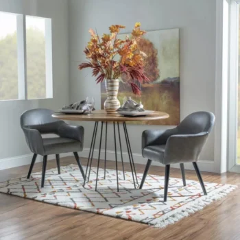 Modern English Oak 40″ Round Dining Table with Metal Legs