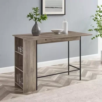 Expandable Grey Wash Side Table with Adjustable Shelves and Drop Leaf