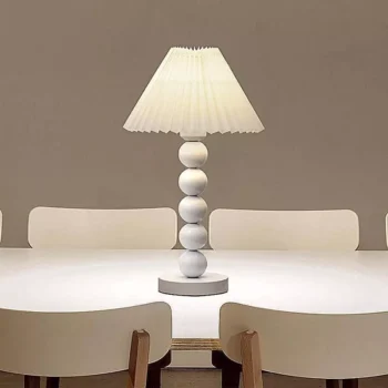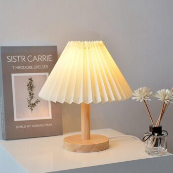 Charming Retro Dimmable Pleated Paper Desk Lamp – Elegant LED Bedroom Night Light