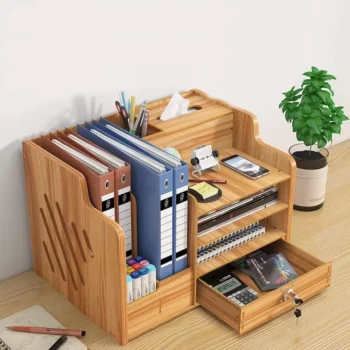 Compact 2-Layer Paulownia Wood Desk Organizer