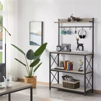 Versatile 4-Tier Steel Baker’s Rack with S-Hooks and Shelves