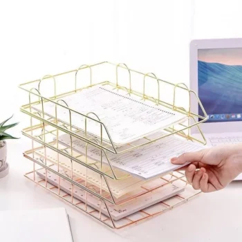 Elegant Rose Gold Metal Desk Organizer