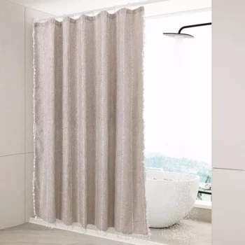 Luxurious Boho-Chic Striped Linen Cotton Shower Curtain with Tassels and Hooks