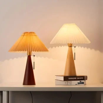 Modern Nordic Pleated Table Lamp – Solid Wood Desk Light with Fabric Shade