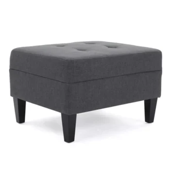Elegant Dark Grey Fabric Tufted Ottoman