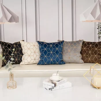 Geometric Plaid Embroidered Velvet Cushion Cover
