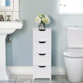 Elegant White Wooden Bathroom Cabinet with 4 Drawers