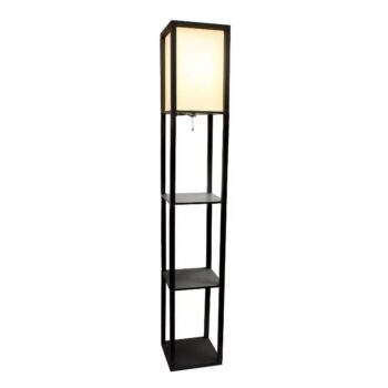 Elegant Multi-Functional Floor Lamp with Storage Shelves and Linen Shade