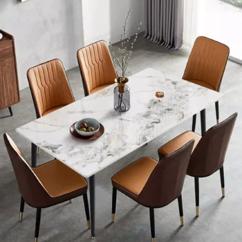Luxury Nordic Leather Dining Chair with Metal Legs and Ergonomic Backrest