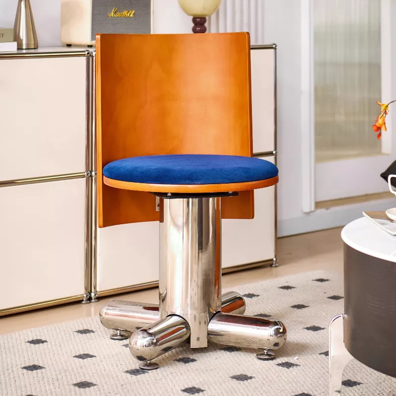 Modern High Back Swivel Dining Chair – Stainless Steel & Solid Wood Design