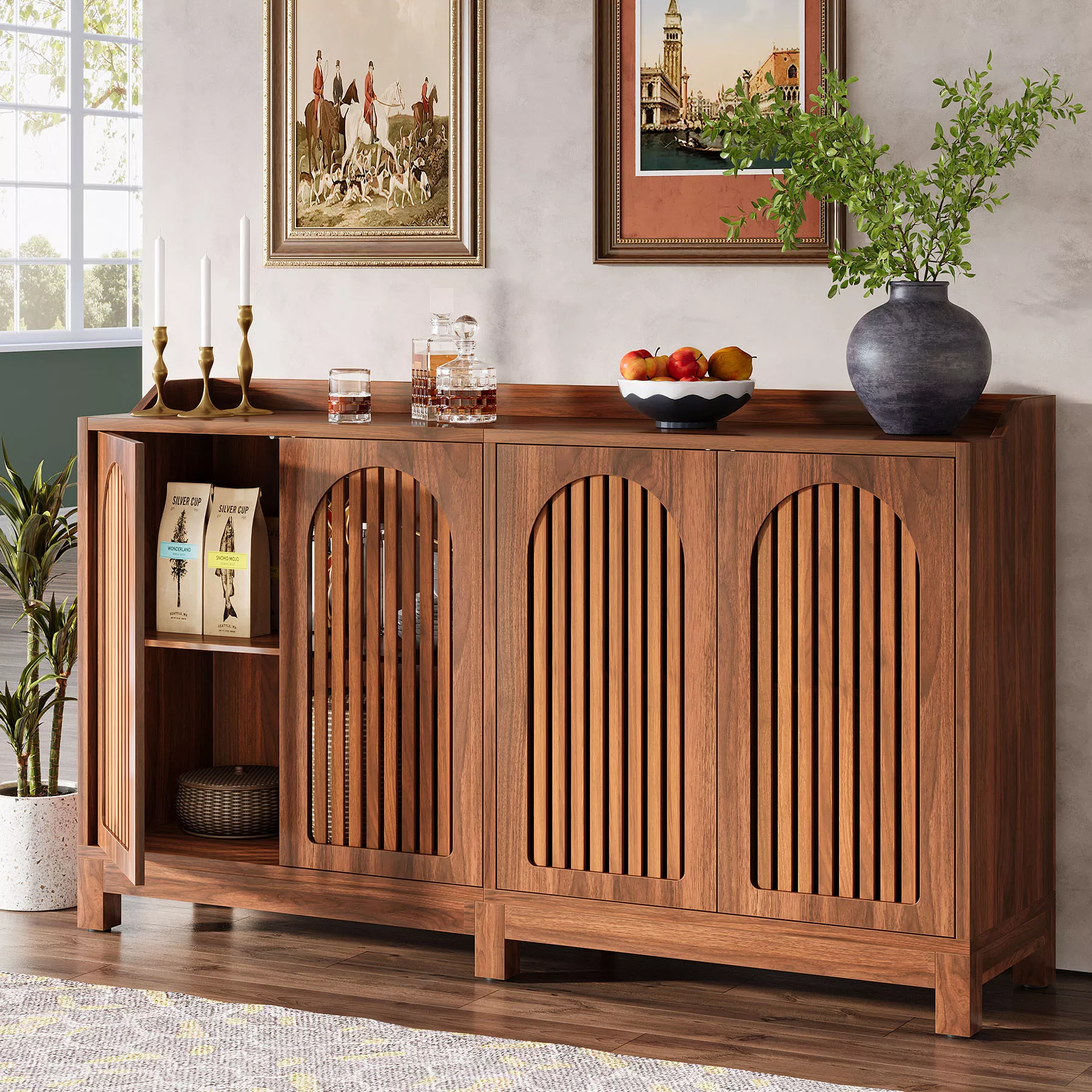 57″ Walnut Farmhouse Buffet Cabinet with Storage, Doors & Shelves