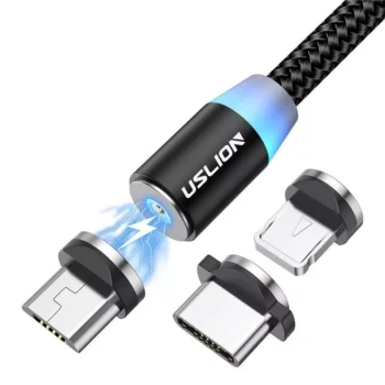 3 in 1 Magnetic USB Charging Cable with LED Light – Lightning, Type-C & Micro USB