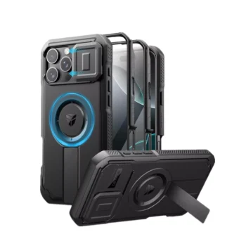 Rugged Armor Case for iPhone 16 Pro Max – Shockproof with Camera Cover & Kickstand
