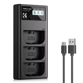 Triple Slot LP-E6NH Battery Charger with LCD Display for Canon Cameras
