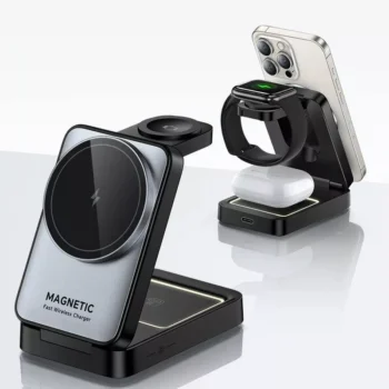 Folding 3-in-1 Magnetic Wireless Charging Stand for Phone, Watch & Earbuds
