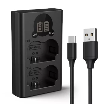 Dual LCD Charger for NP-W235 Batteries with USB-C and Micro USB