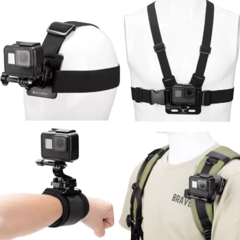Action Camera Mount Kit for GoPro, DJI Osmo, Insta360 & Phones – Chest & Head Straps