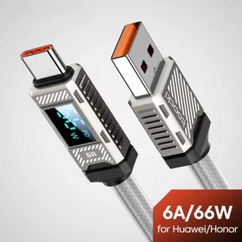USB Type-C to USB-A 6A Fast Charging Cable with LED Display