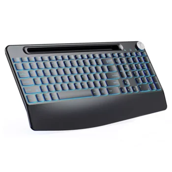 Wireless Ergonomic Keyboard with 7-Color Backlight, Wrist Rest & Phone Holder
