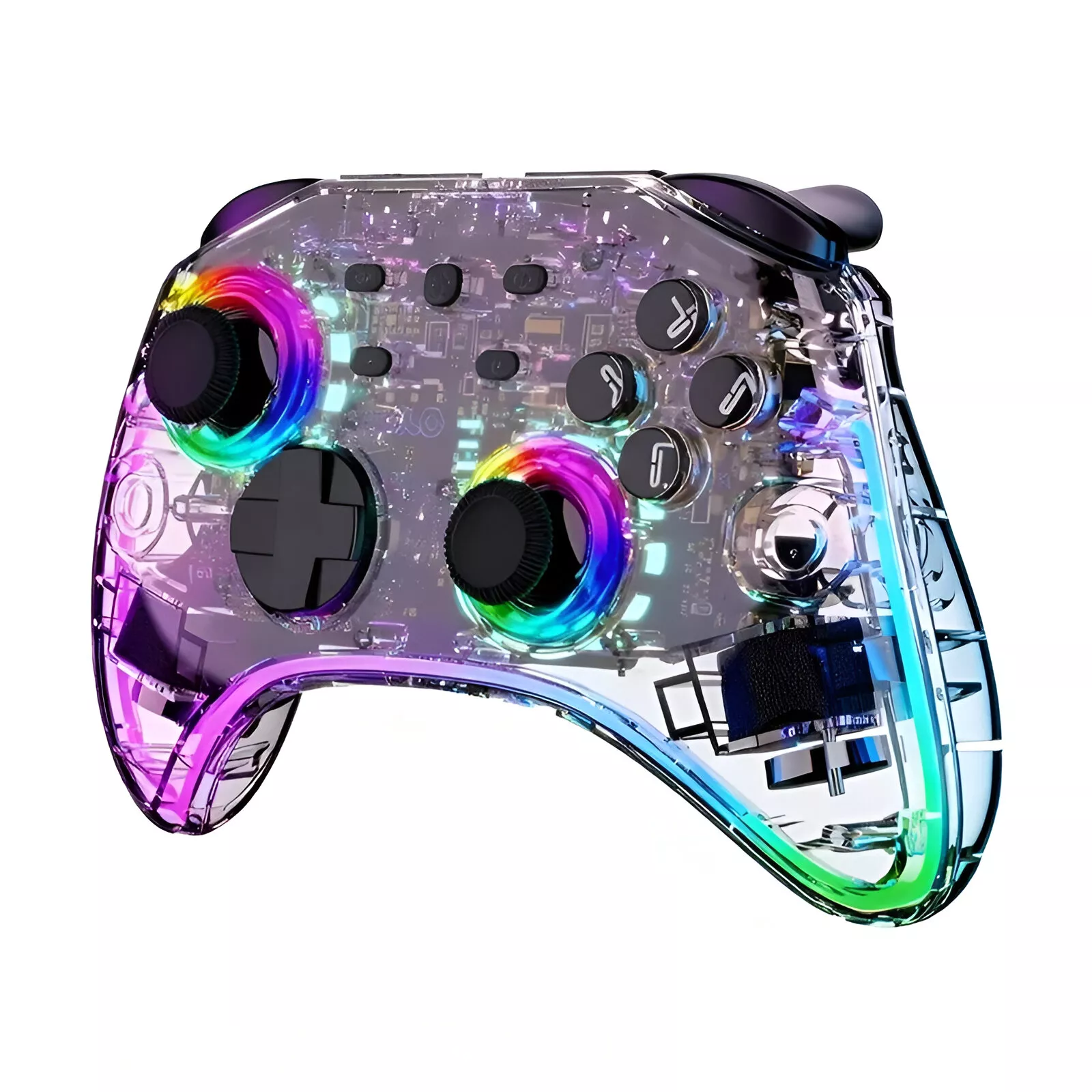 Transparent RGB Wireless Game Controller with Headset Jack for Switch & PC