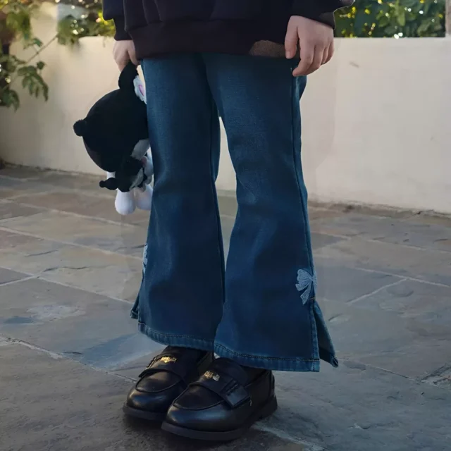 These versatile pants are ideal for everything from school days to family gatherings, outdoor parties, or more formal occasions. The bootcut design adds a graceful flair, while the mid-rise elastic waistband ensures a secure yet flexible fit. Whether she’s heading to a birthday celebration or enjoying a crisp autumn stroll, these trousers are a reliable go-to piece for her seasonal wardrobe.
