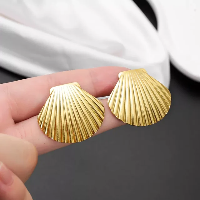 These earrings aren’t just accessories; they are the perfect finishing touch to elevate your summer look. The lightweight design makes them easy to wear all day, while the gold finish adds a subtle glow that complements any skin tone. Their ocean-inspired fan shape makes them stand out from ordinary studs, giving your outfit a unique and trendy flair.