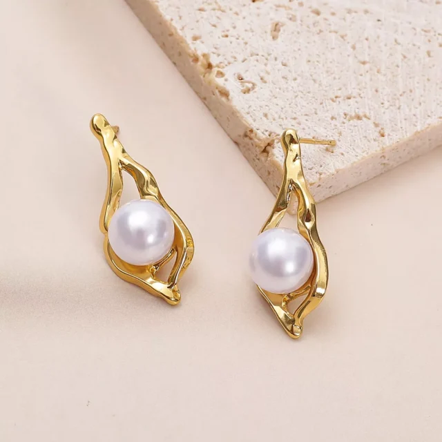 Crafted from durable stainless steel and plated in a rich gold tone, these earrings offer both shine and substance. The irregular design brings a sense of artistic flair, while the smooth pearl detail softens the look with a touch of femininity. Lightweight yet striking, they’re a perfect blend of comfort and high-end design that you’ll love reaching for again and again.