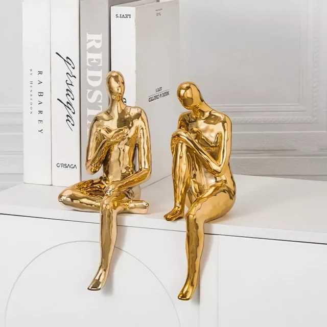 The Golden Man Reading Sculpture is not just a figurine—it’s a conversation starter. Its reflective golden surface adds a touch of luxury, while the thoughtful reading pose inspires relaxation and mindfulness. Whether you are decorating a modern apartment, a classic library, or a creative workspace, this piece adapts seamlessly and enhances the overall atmosphere.