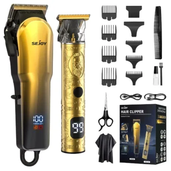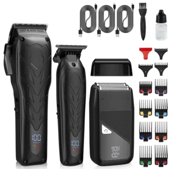 Professional Cordless Hair Clippers Kit with T-Blade & LED Display