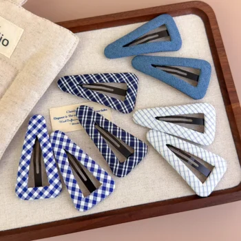 Blue Plaid Triangle Hair Clips – Sweet Retro Hairpin for Women & Girls