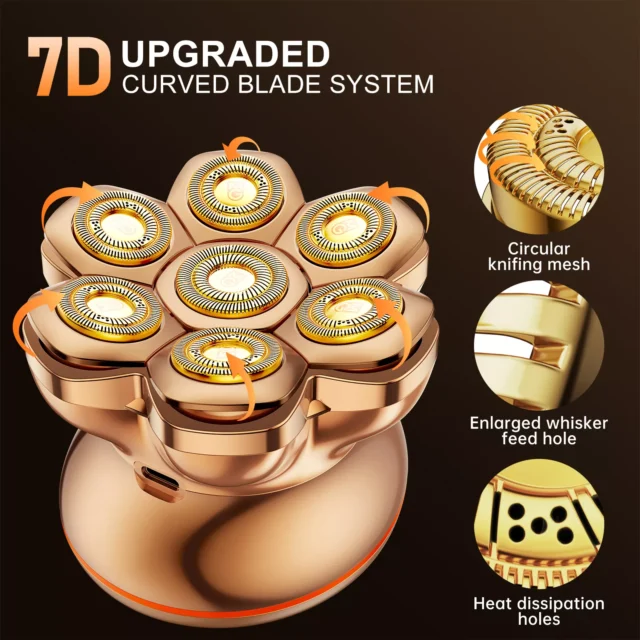 This electric shaver is built with your convenience in mind. The 7D floating blades flex and adapt to the curves of your head and face, ensuring a close and irritation-free shave. With its IPX6 waterproof design, you can shave dry for speed or use it in the shower with shaving foam for extra comfort. The detachable, washable blade system makes cleaning as simple as rinsing under the tap, while the magnetic blade installation offers effortless handling and larger hair storage capacity.