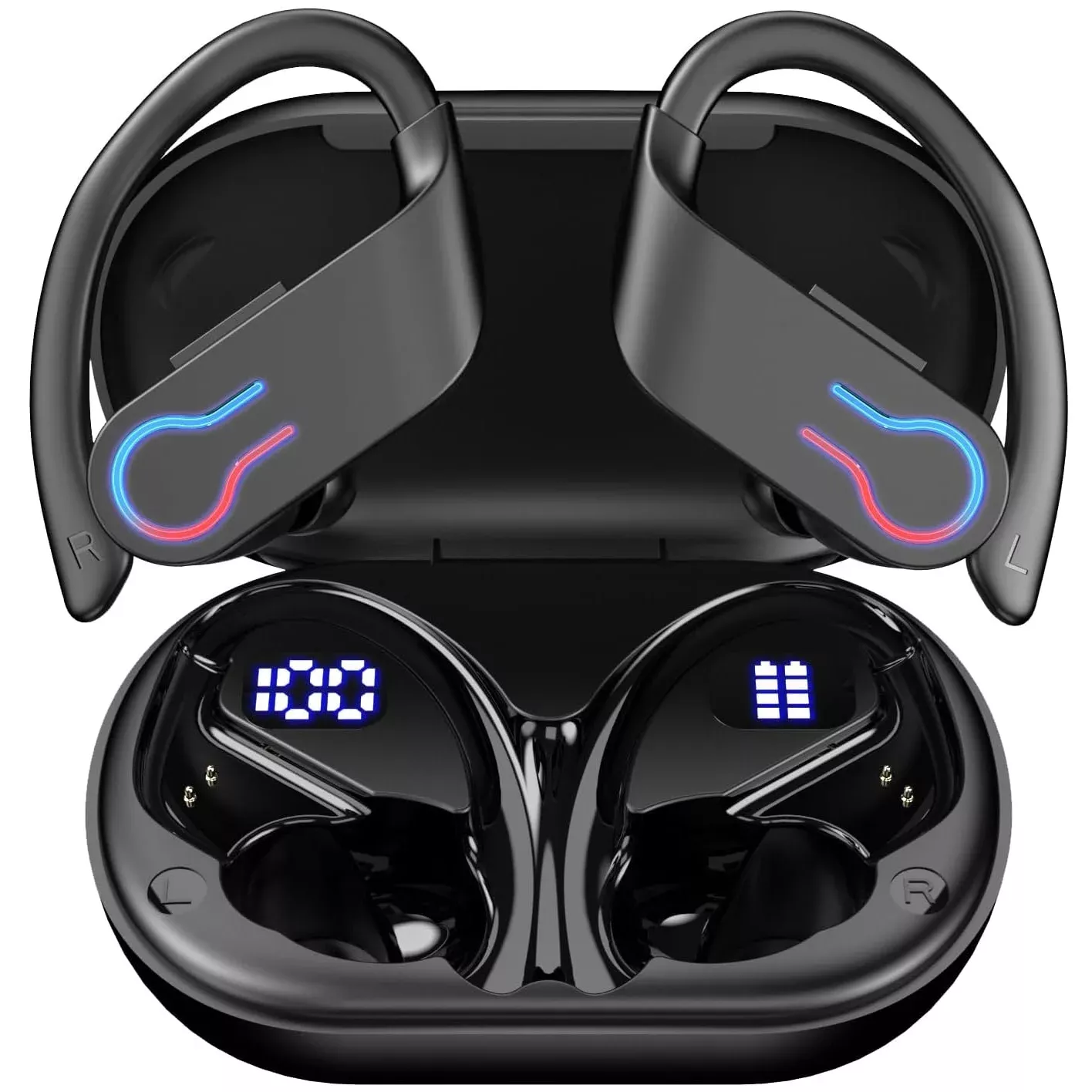 Clip-On Wireless Sports Earbuds with Mic, HiFi Sound & LED Display
