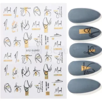3D Autumn Nail Art Stickers – Gold Leaf, Cotton Flowers, & Geometric Designs