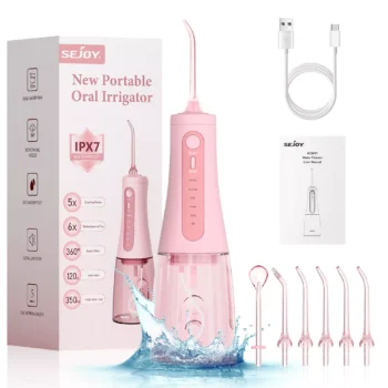 Rechargeable Pink Water Flosser – 5 Modes, 6 Jet Tips, IPX7 Waterproof